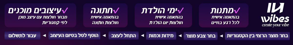 מבחר מוצרים בעיצוב אישי לבני זוג – מתנות עם הקדשה, חולצות תואמות, כובעים מודפסים ועוד. מתאים לימי שנה, הצעות נישואין, ולכל מי שרוצה להביע אהבה בצורה מקורית ומותאמת אישית. אפשרות להוספת שמות, תאריכים ומשפטים אישיים לבחירתכם.